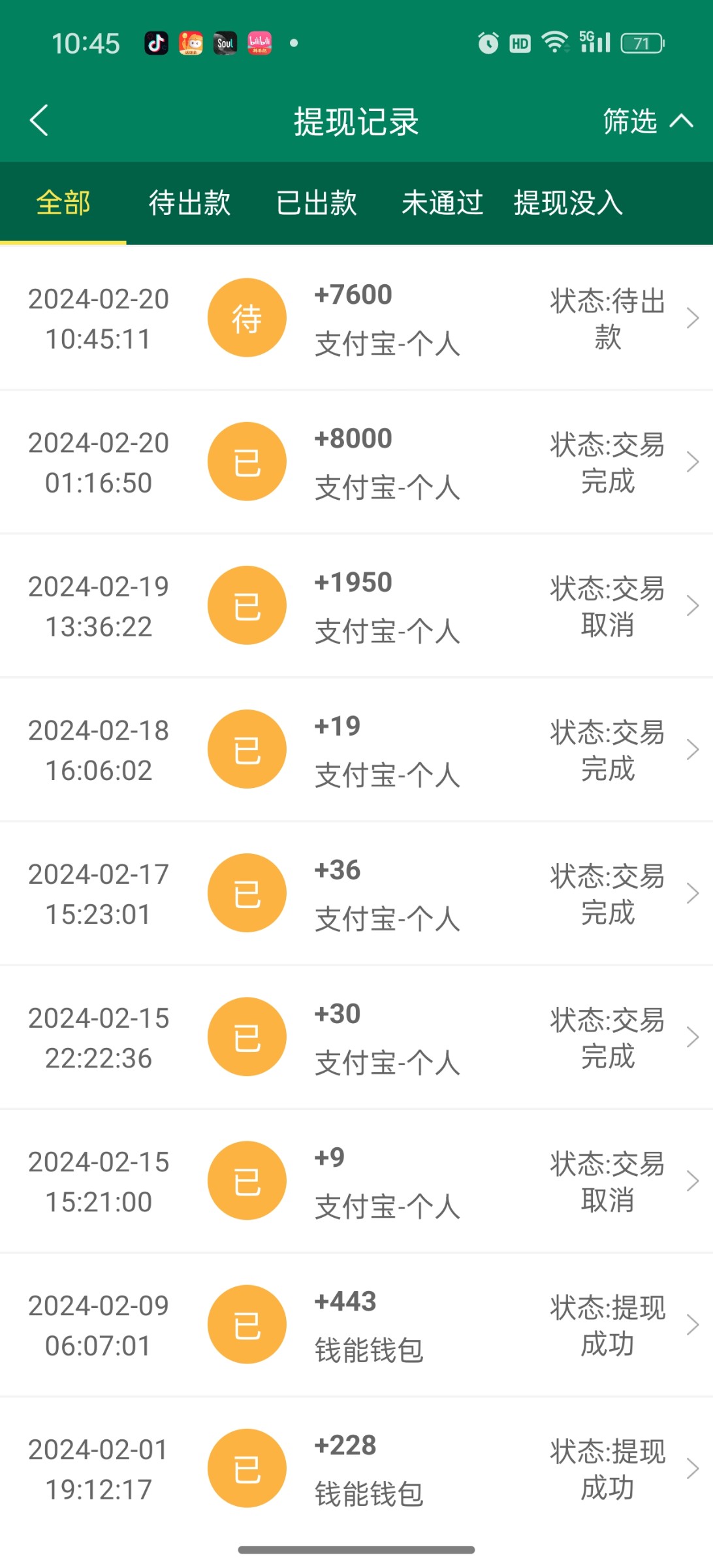 没有其他收款,提支付宝直接风控了。又冲进庄直接输完了