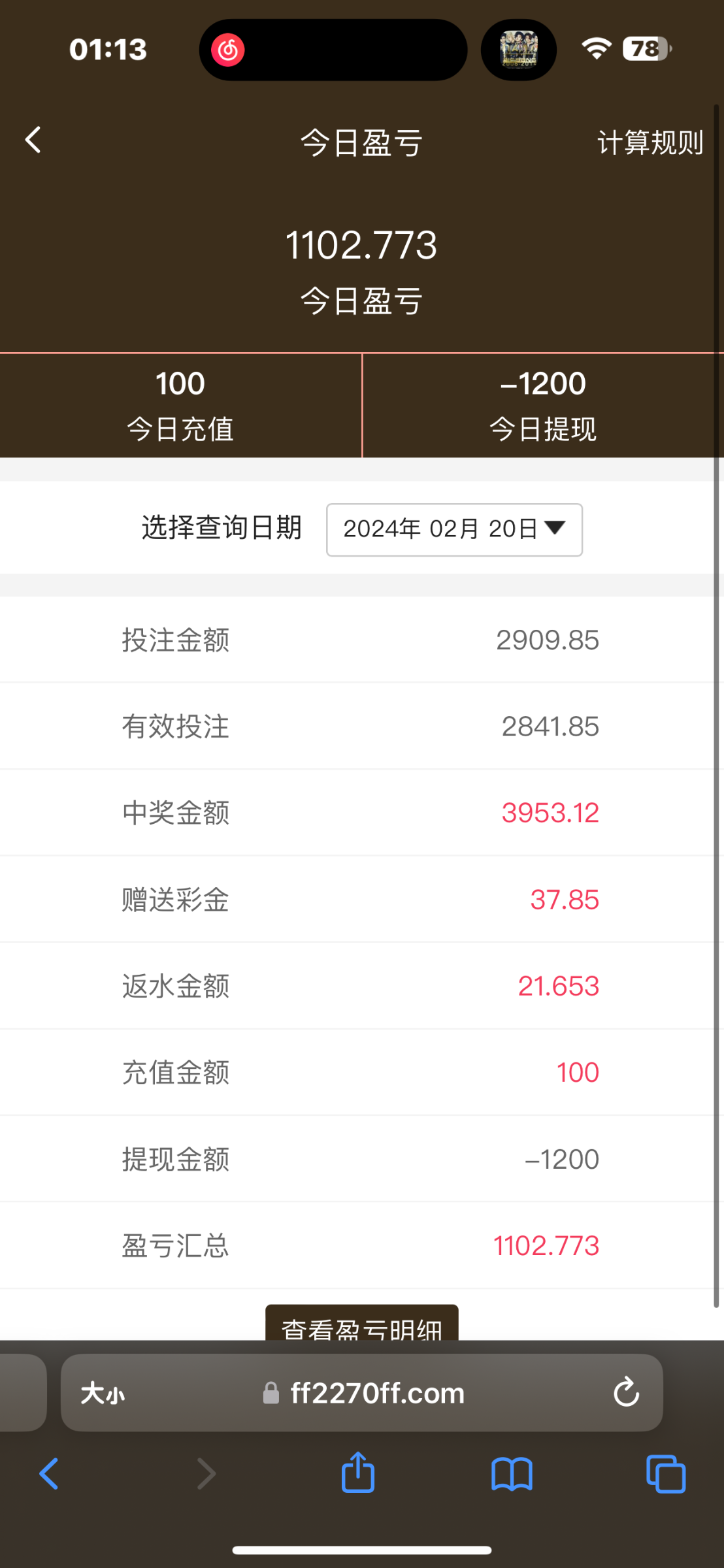 四天赢回来1.3个