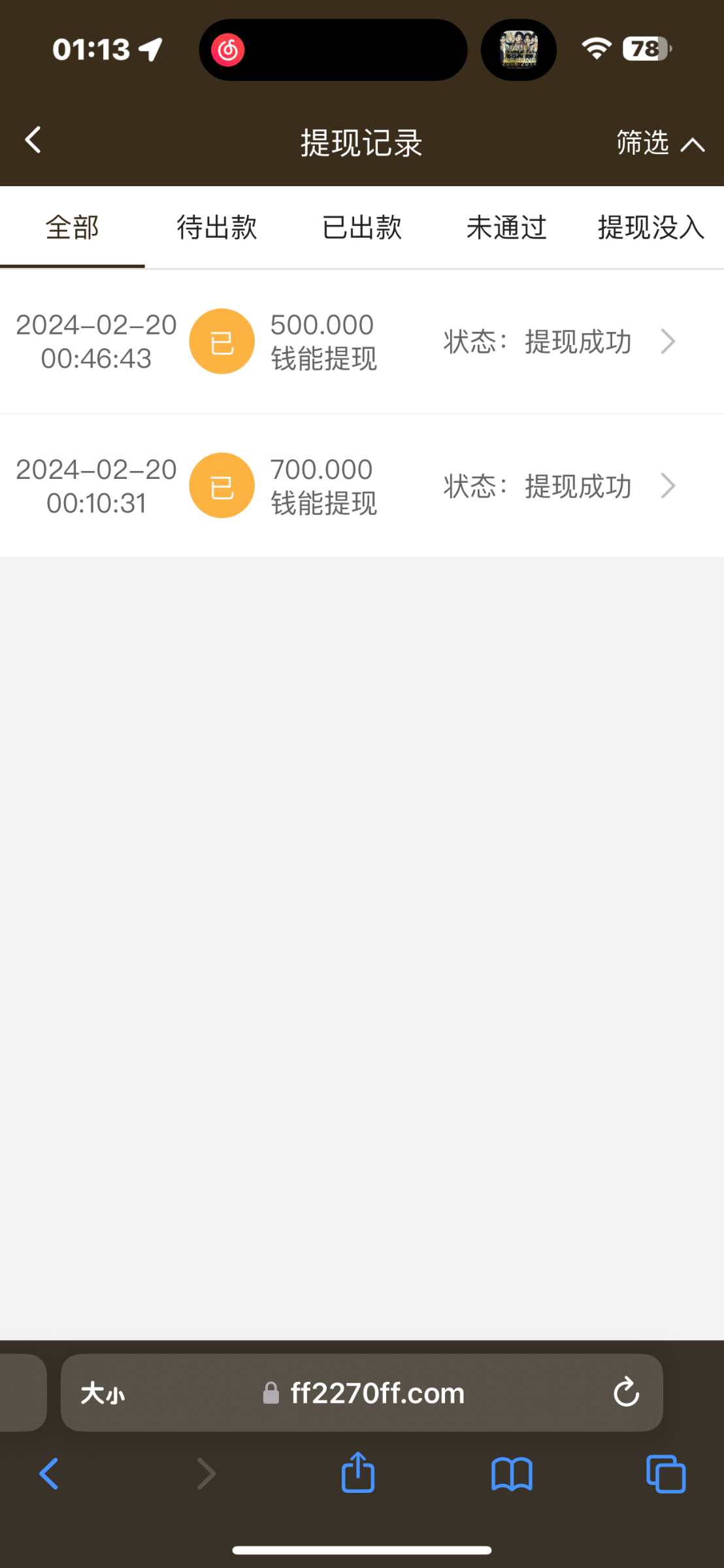 签到给2块钱压完美中了。买超快6又中,上到500送回去300。去赏金0.8炸800。没充值过抱着没能提现的可能。居然到了。格局还行。晚上的时候星空体育狗推说注册免费送100一水。又嫖200。今日收入1k