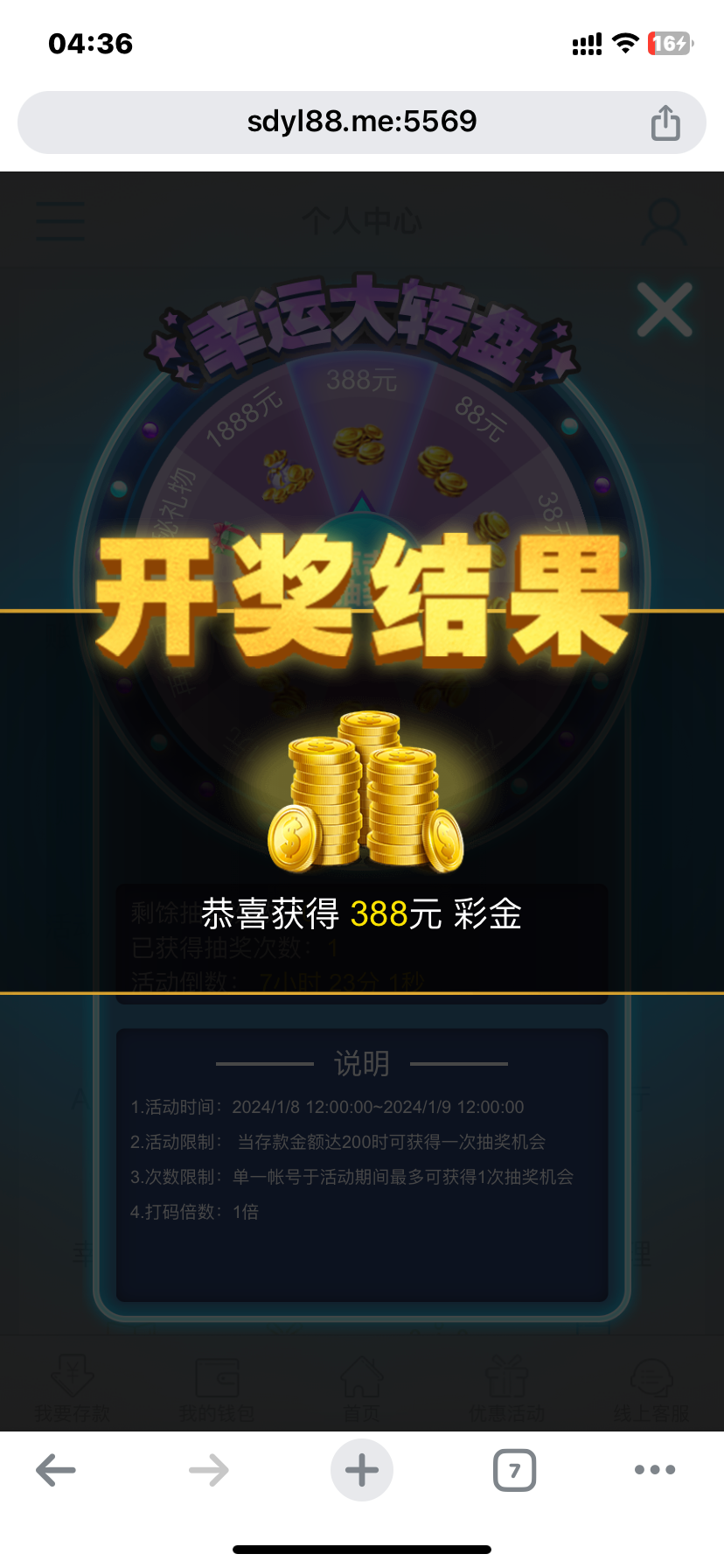 每天24波红包,存一下再去打,白嫖了一定要偶尔存点钱活跃下,这个平台挺多回馈的,我都一直在玩,也有签到彩金