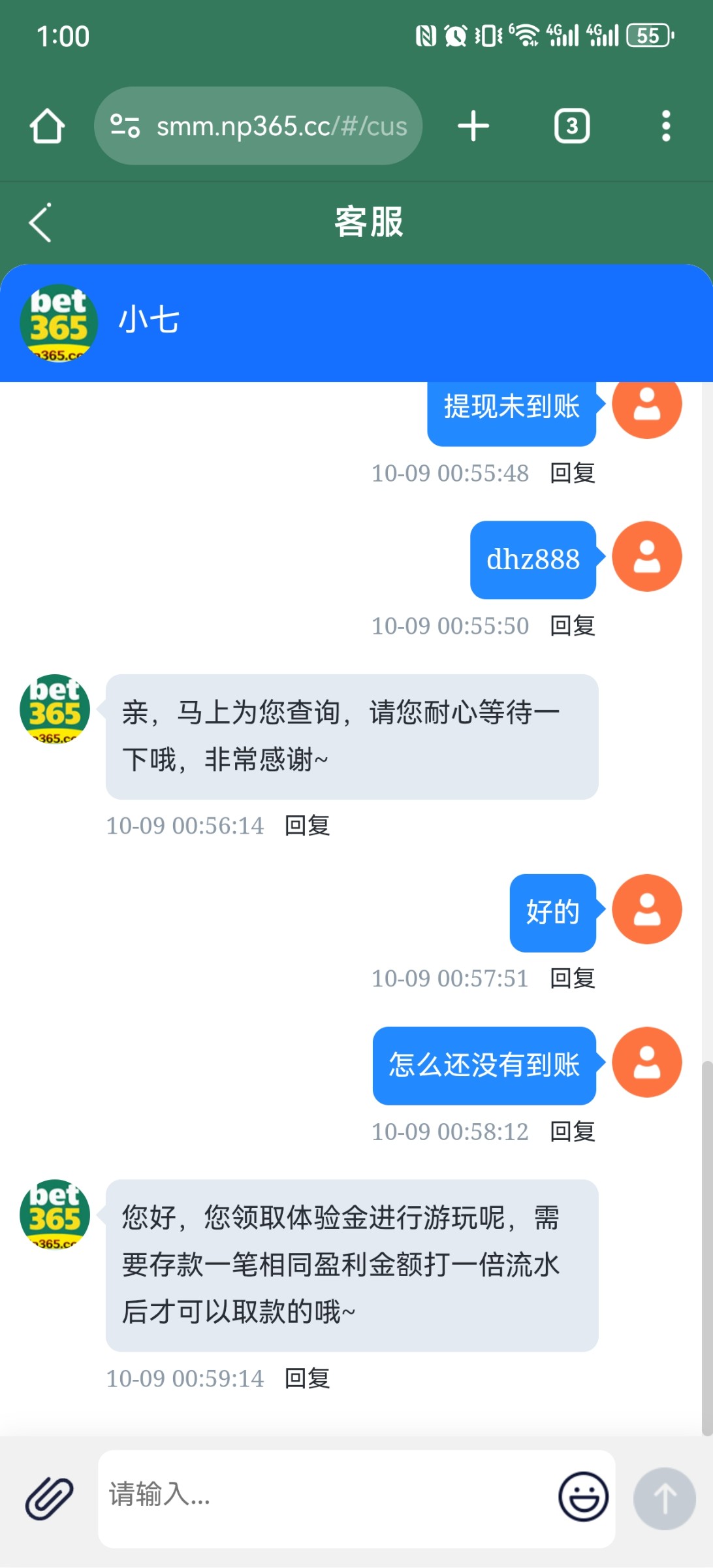送三天就让充值了。
