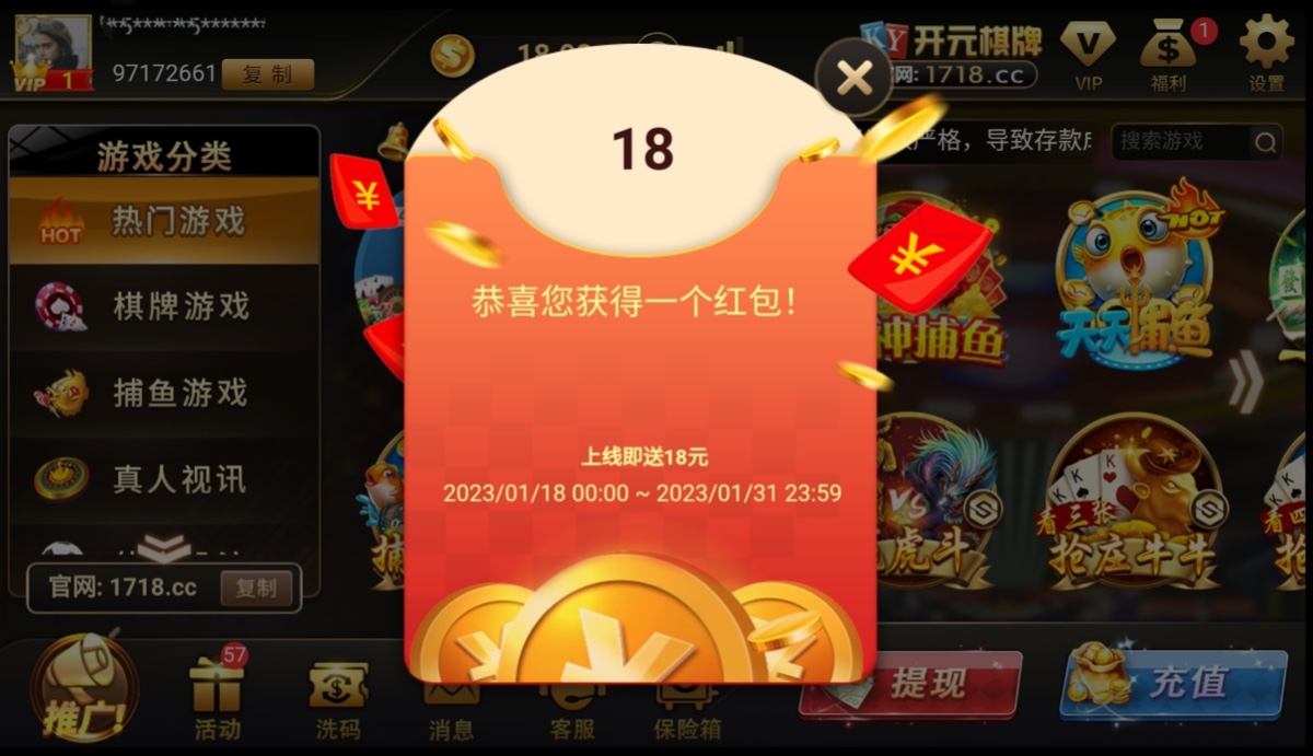 老用户有账号的登录上去就有18块的红包