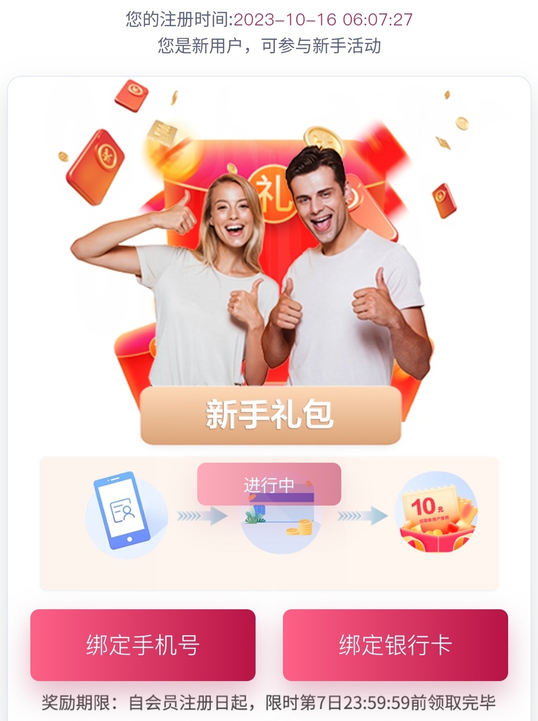 新用户注册完善资料,优惠里找到"新人攻略手册"秒送10,自己看一下游戏限制,最低100提现。这种平台禁止充值,白嫖即可。