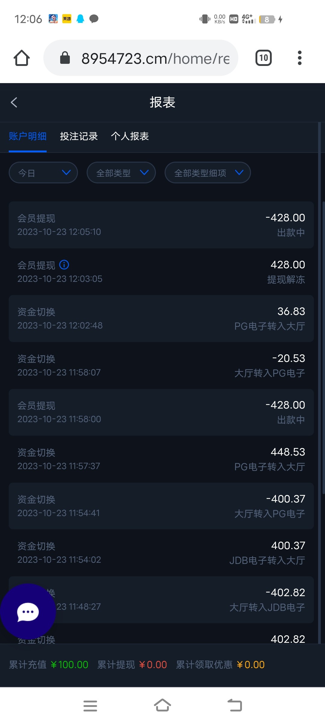 这台子充值有水,刚充值了100下了六百多