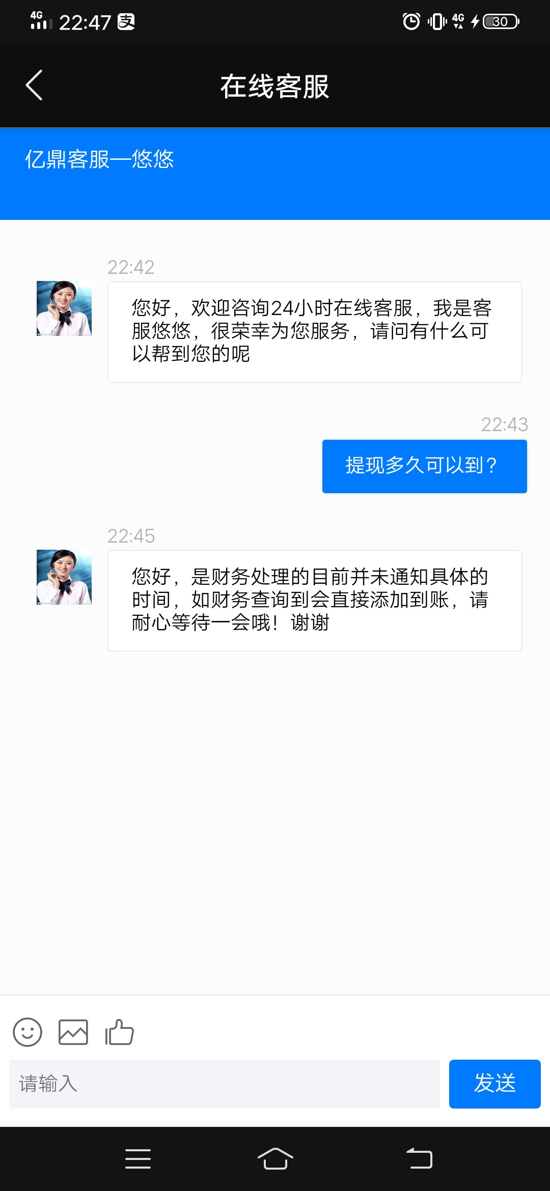 充下一百,结果,没到账。?!在等客服回复