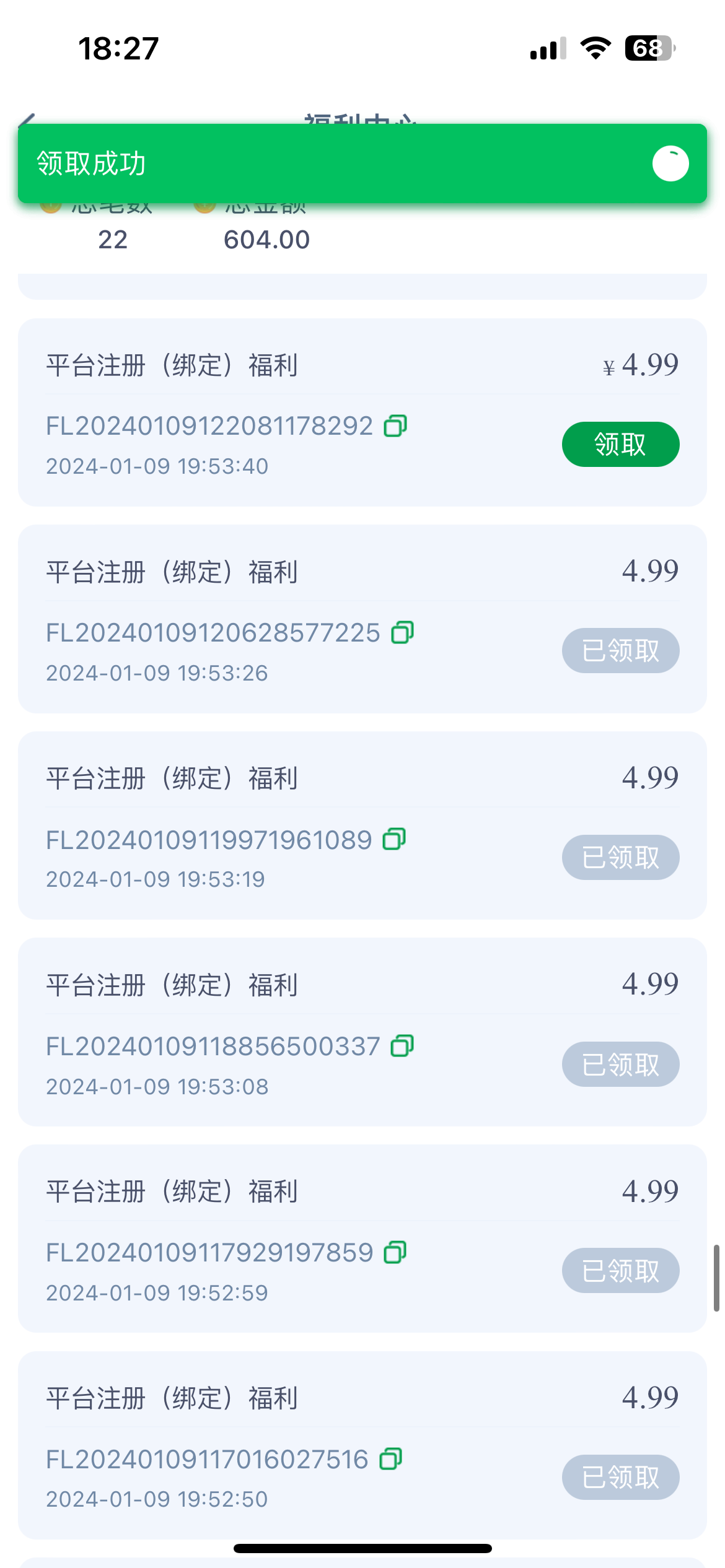 之前发过,今天亲测能领,领取了26  客服说随机的, 要下载后再去注册,在福利中心直接领取 ,出款未知,我没打出来,禁止充值