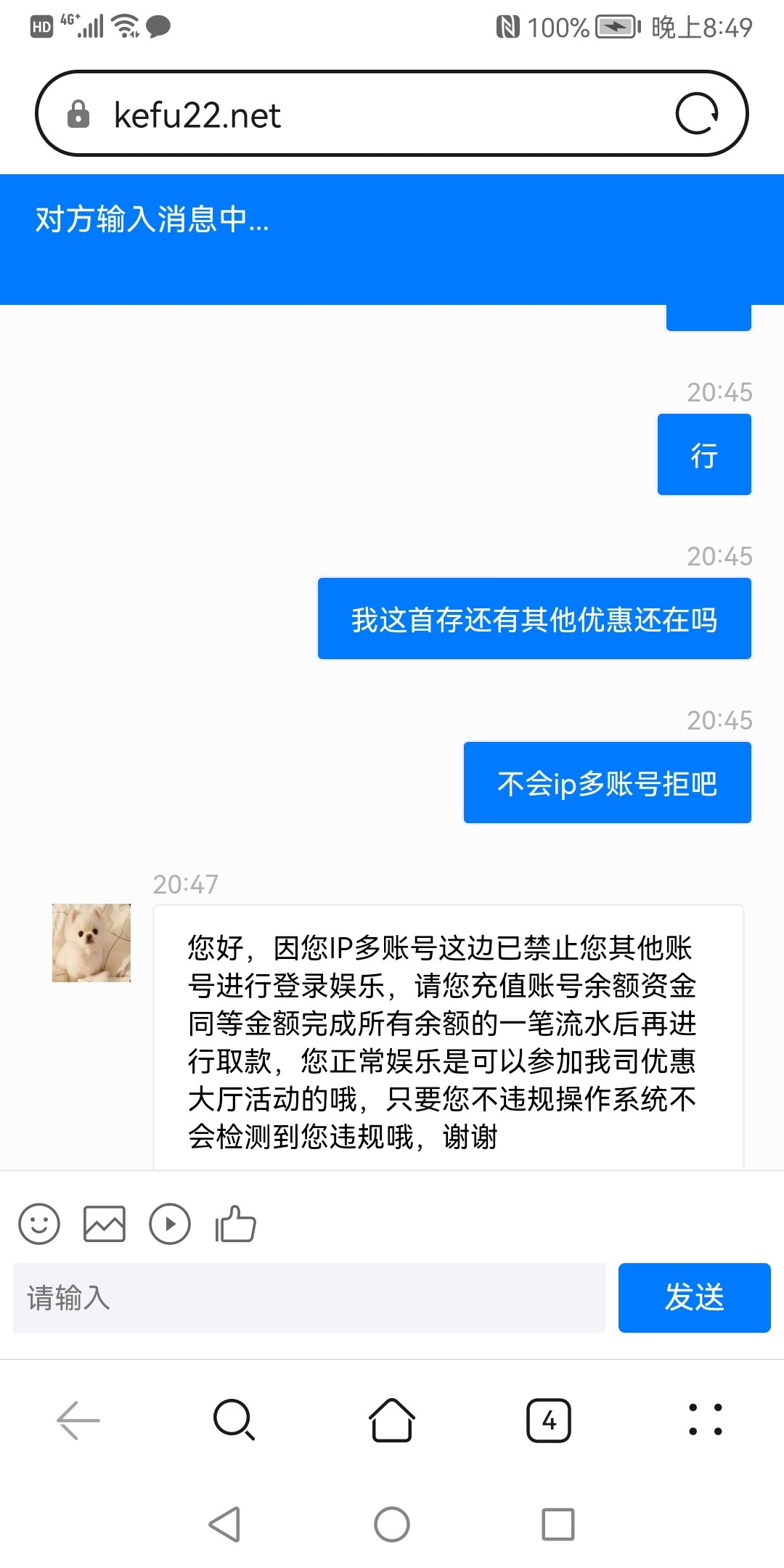 提款成功,一直没到,问客服说再排队,返回后,过一会再看退回.ip多账号,非说你ip问题,假装清除你其他账号,也不直接封你号,然后装模作样的说清空了让你充值提款。第一次遇到这种b台,成功后,后悔了给你取消退回的