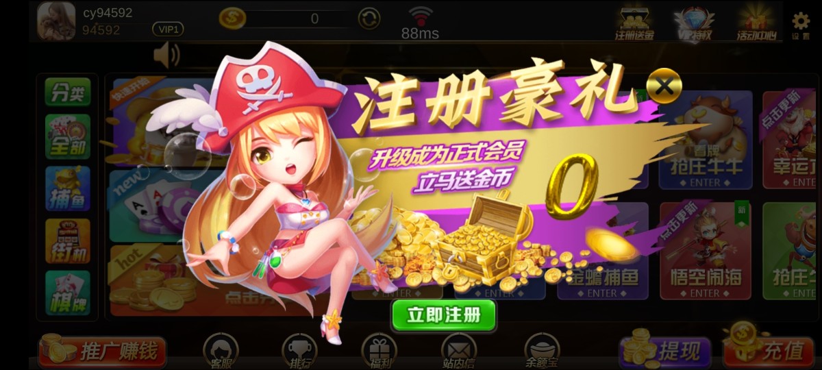 新用户注册秒送2万等于20打到10万即可提现