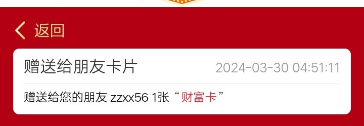 仰天长啸 楼主求一张财富卡,账号zzxx56,必有回团