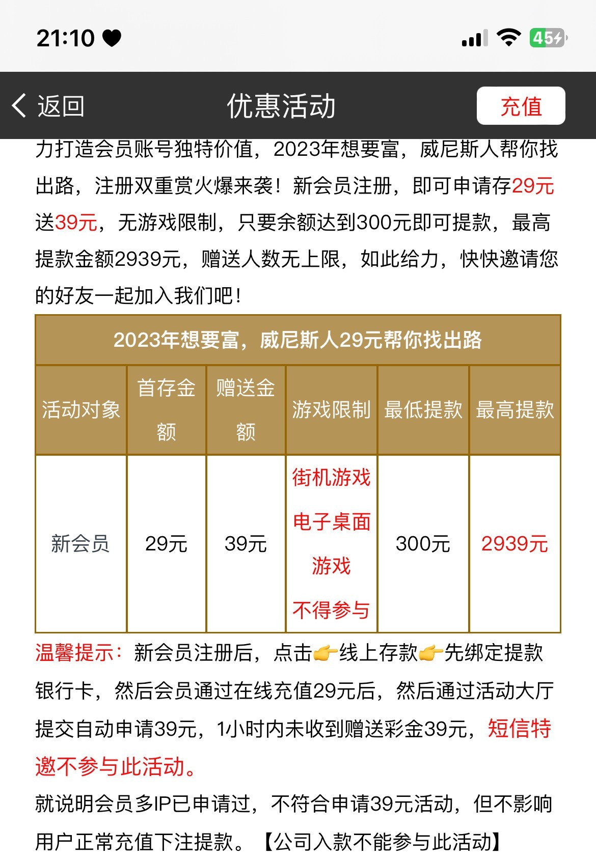 【澳门金威尼斯人】首存29送39元彩金/满10倍水200元提款