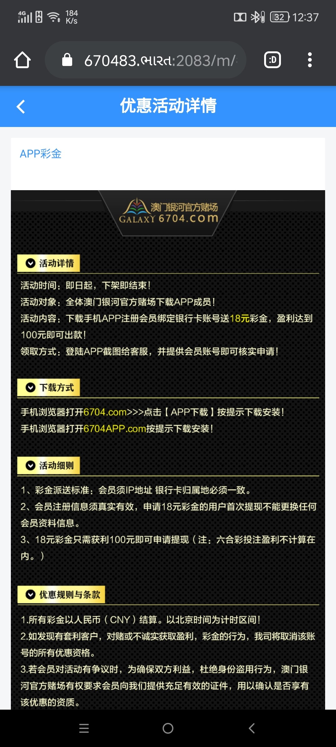 澳门银河6704,下载注册绑卡联系客服申请18彩金,后续有回访送28,前几天没当回事儿,测试了一下,刚才登录看到账了18彩金,出款自测