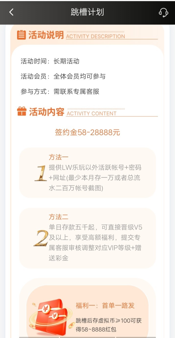 跳槽金需要提供其他平台的账号,客服要看充值和最近一个月的流水