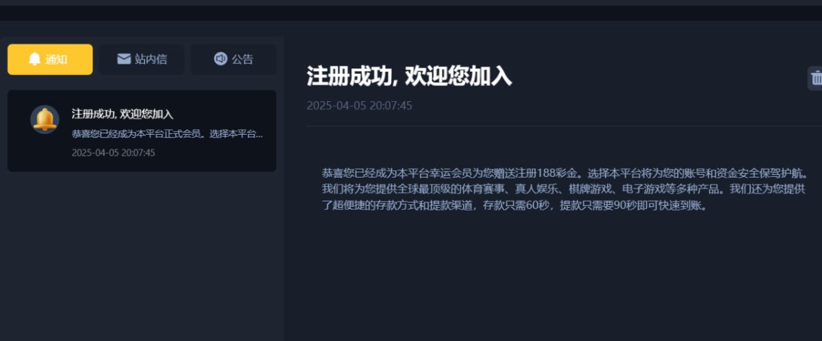 昨晚短信注册的今天上号看见有,绑定资料自动送