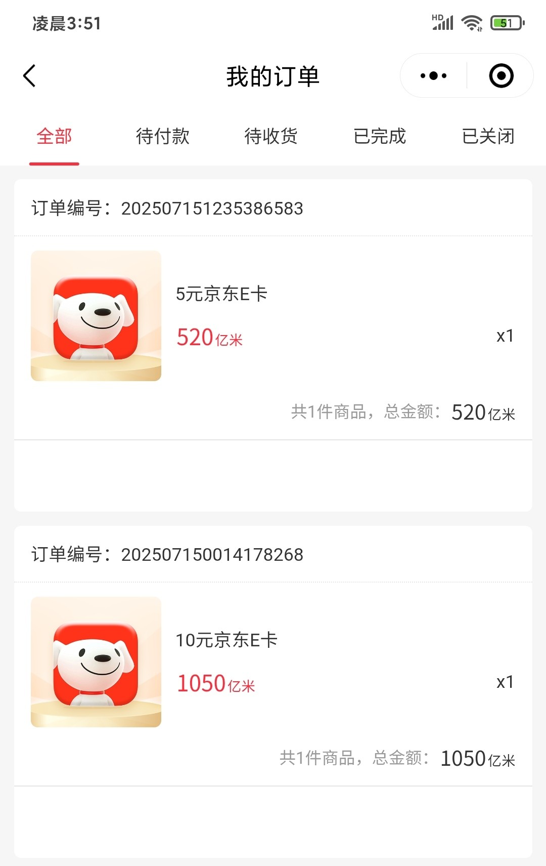 点进去下滑搜索京东E卡选10元的兑换,1100积分>1050,不用花一分钱