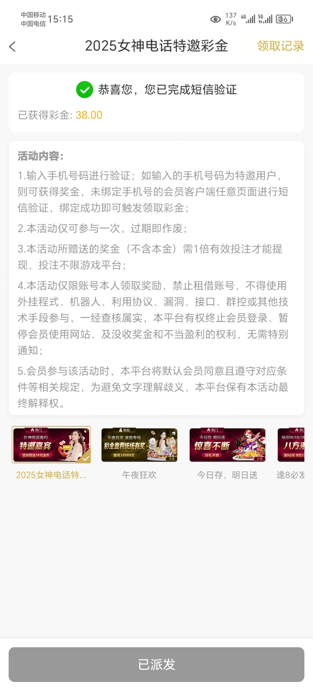 特邀可以领取38,我领了特邀,鲁首存,二存,三存,大概送了100多彩金,用1k轮回打,还是有点水分