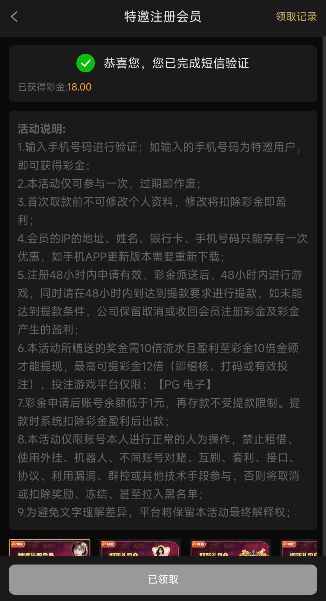 自助特邀彩金18没试过的去试试