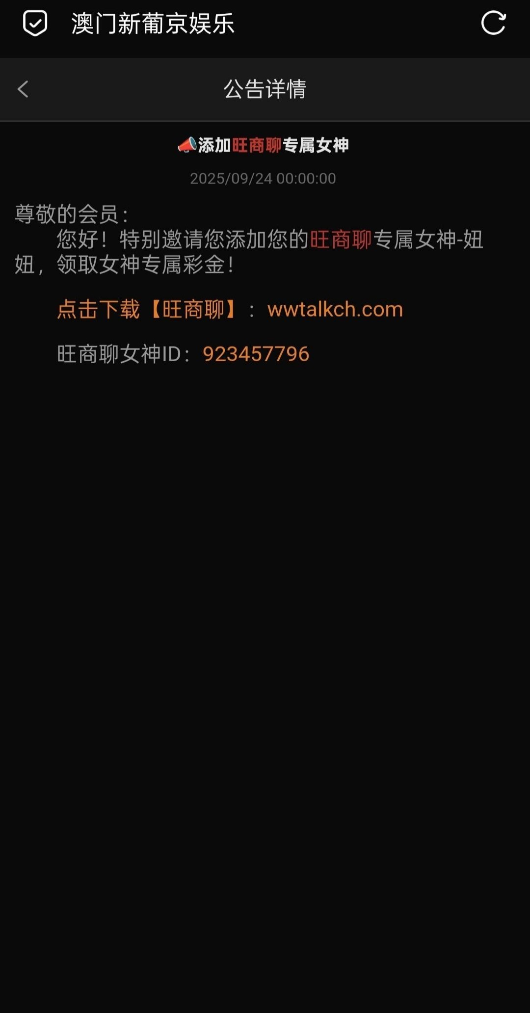 链接536.vip站内信添加旺旺客服申请彩金,老用户去碰瓷试试旺商聊女神ID:923457796