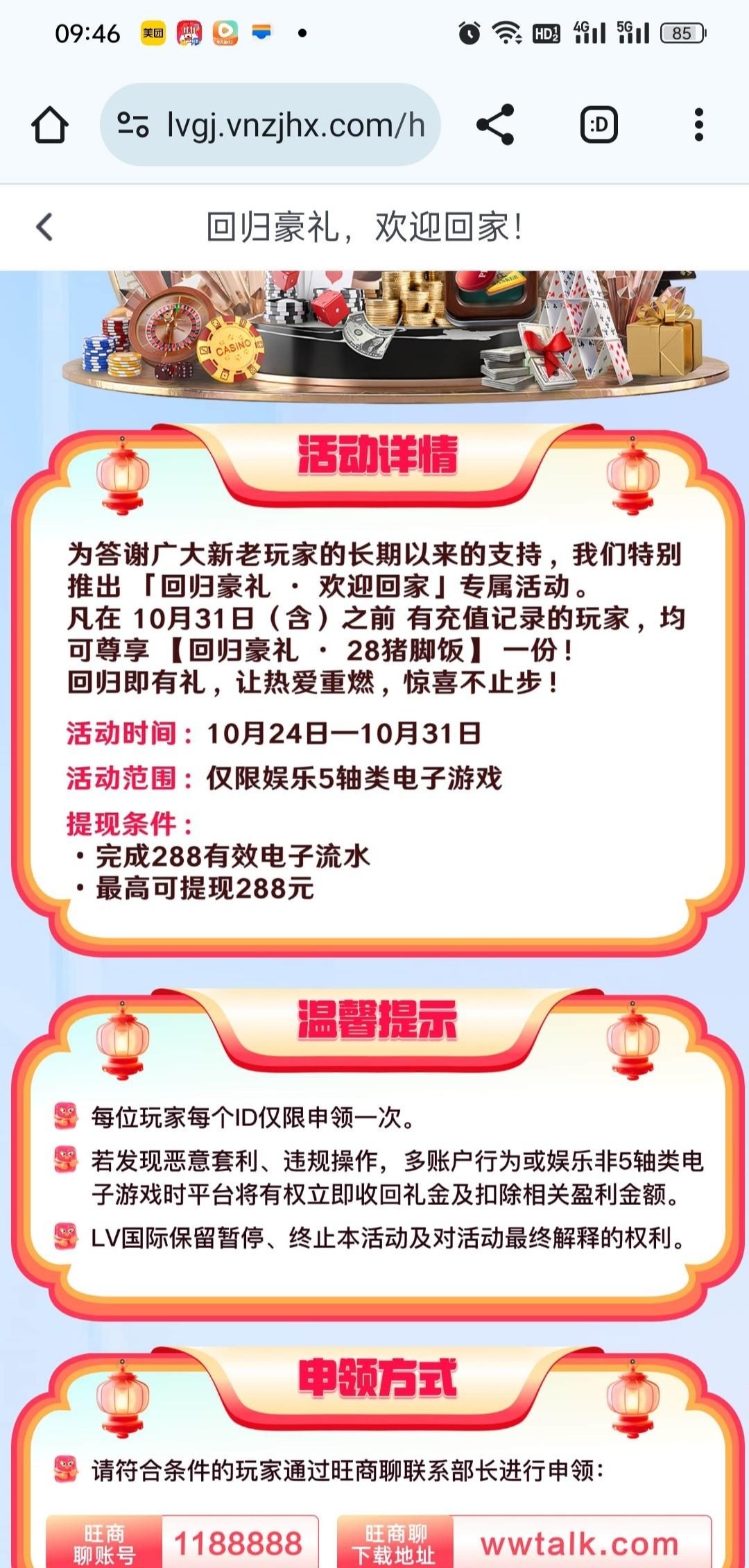 【LV国际】——回归彩金