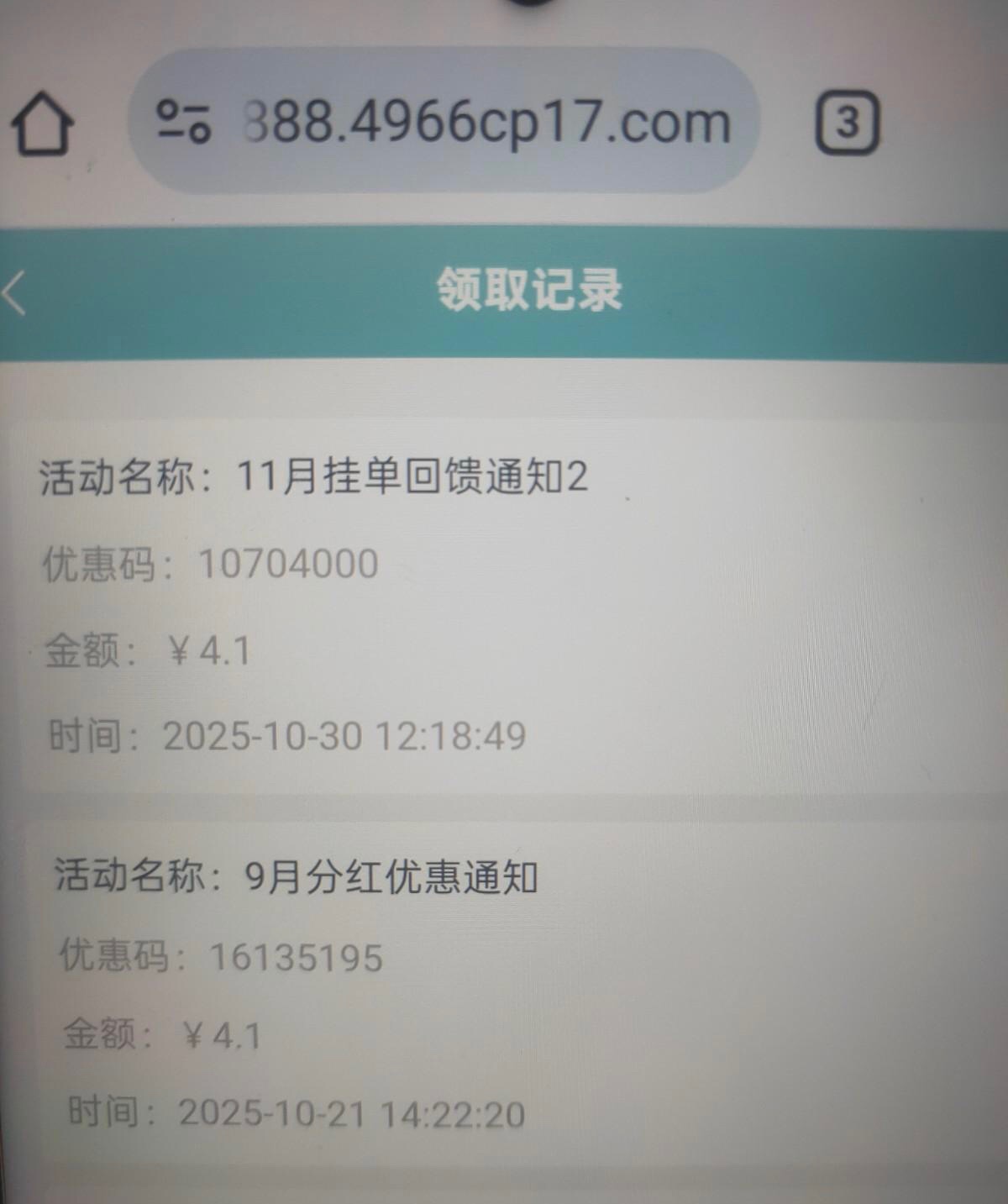 回馈4.1不多,聊胜于无!注意看下自己邮箱,网址4966c11.com