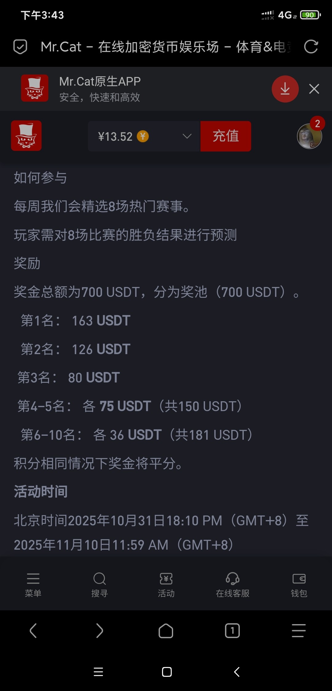 【猫先生】每周免费竞猜 白菜