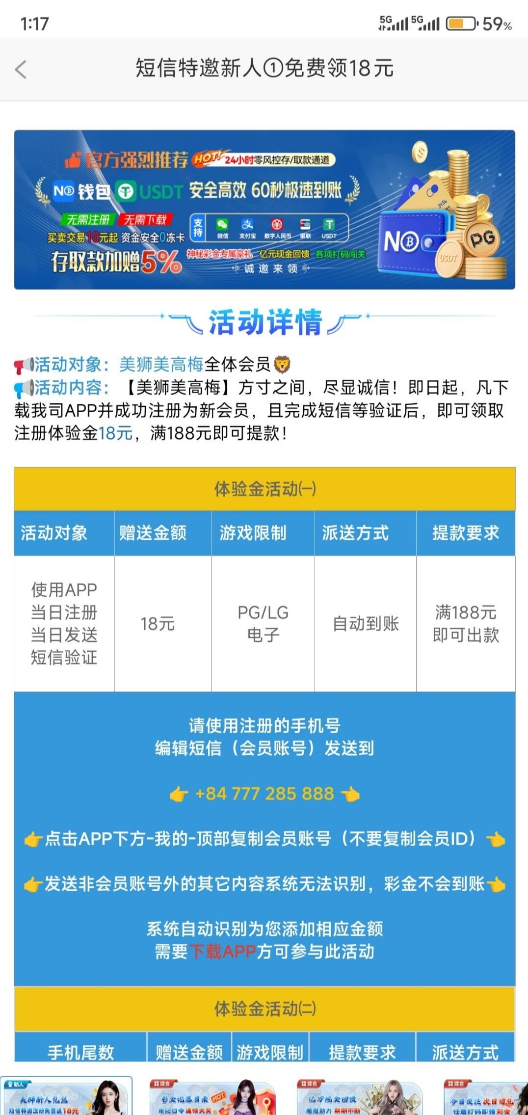 【美高梅4】——短信彩金