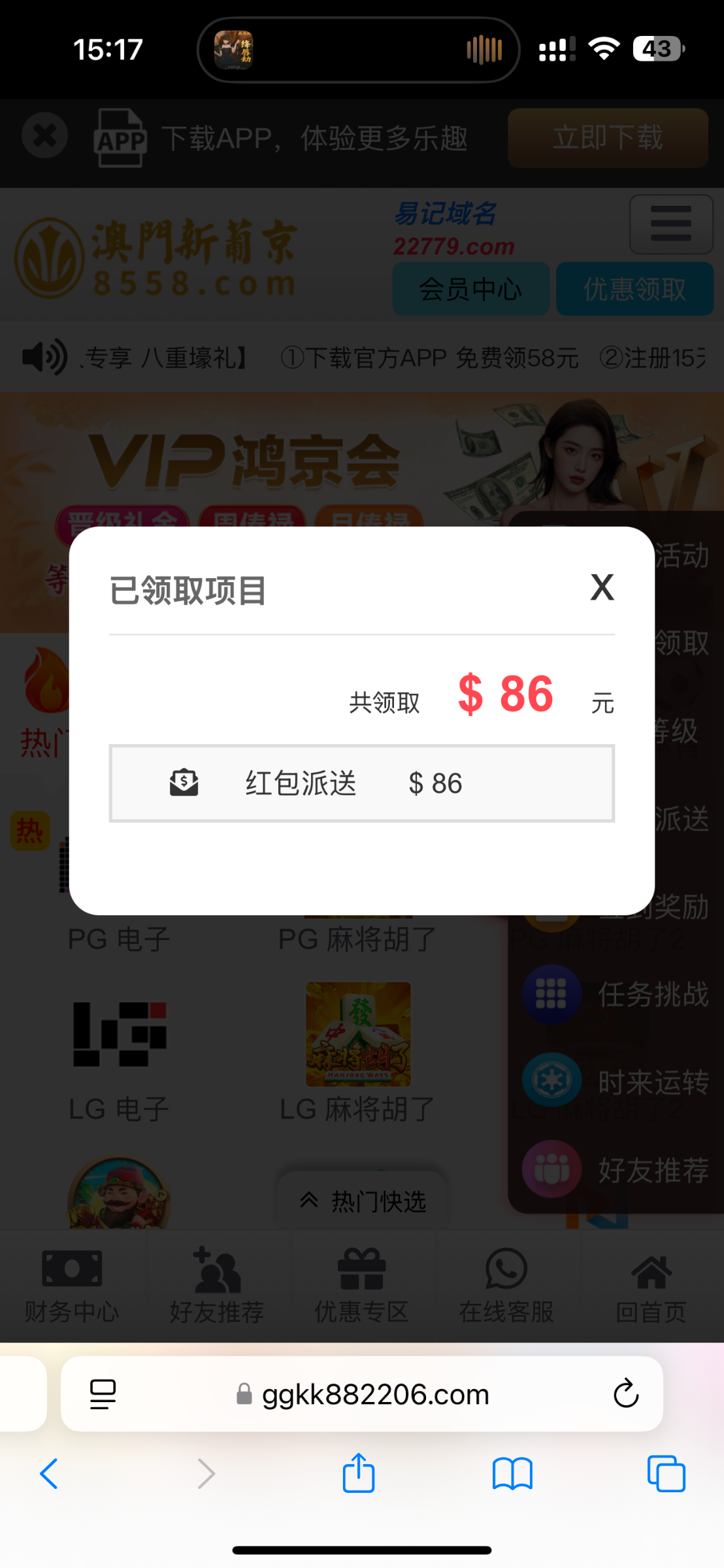 我去,领了86