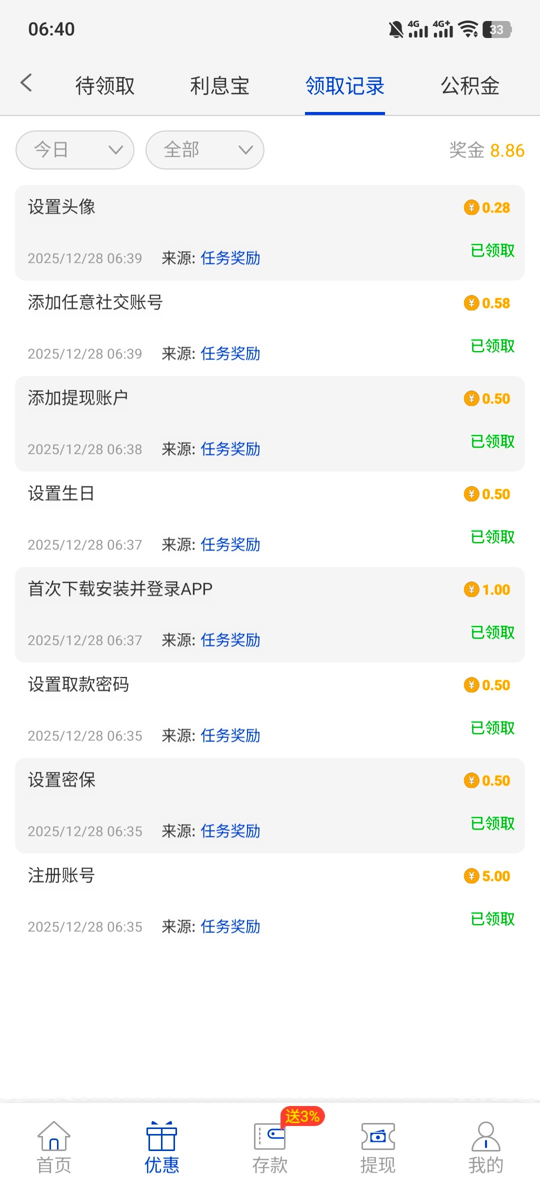 完成信息送8 要充值10才能娱乐 还可以绑定usdt地址申请体金