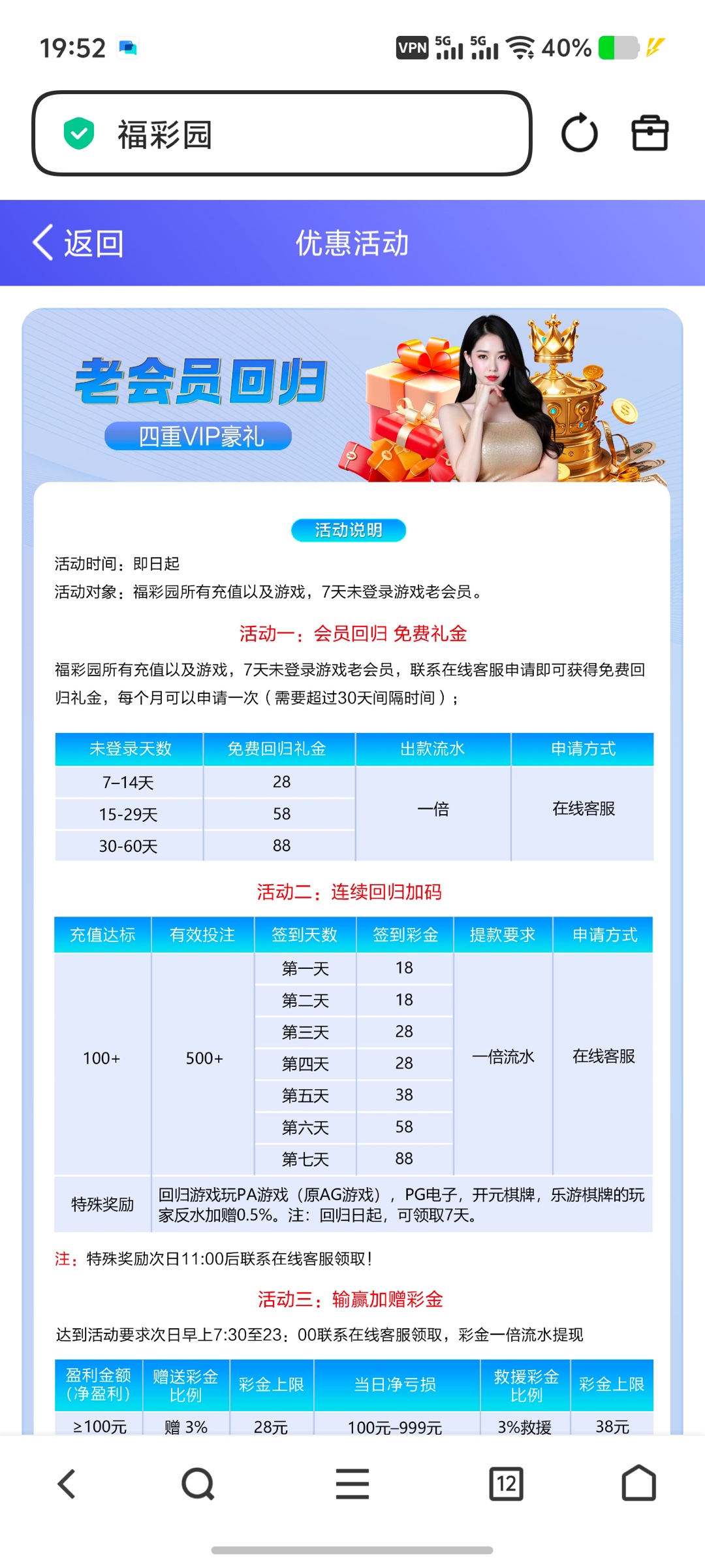 fcy888.com 历史充值过100的找客户申请回归彩金,半小时内到账