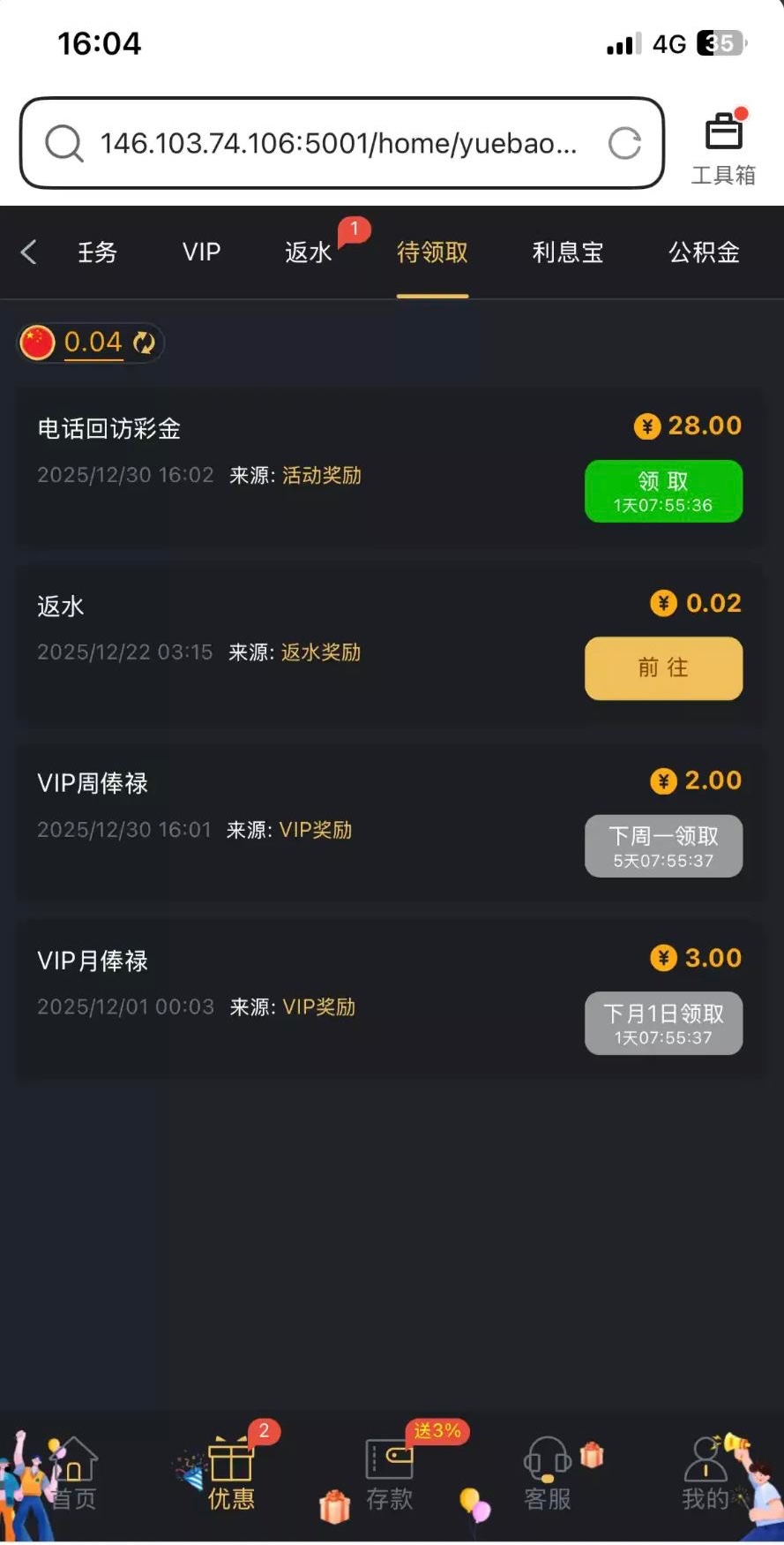 接到电话上线联系客服领取的,有充值过的,可以去碰下链接6367.com