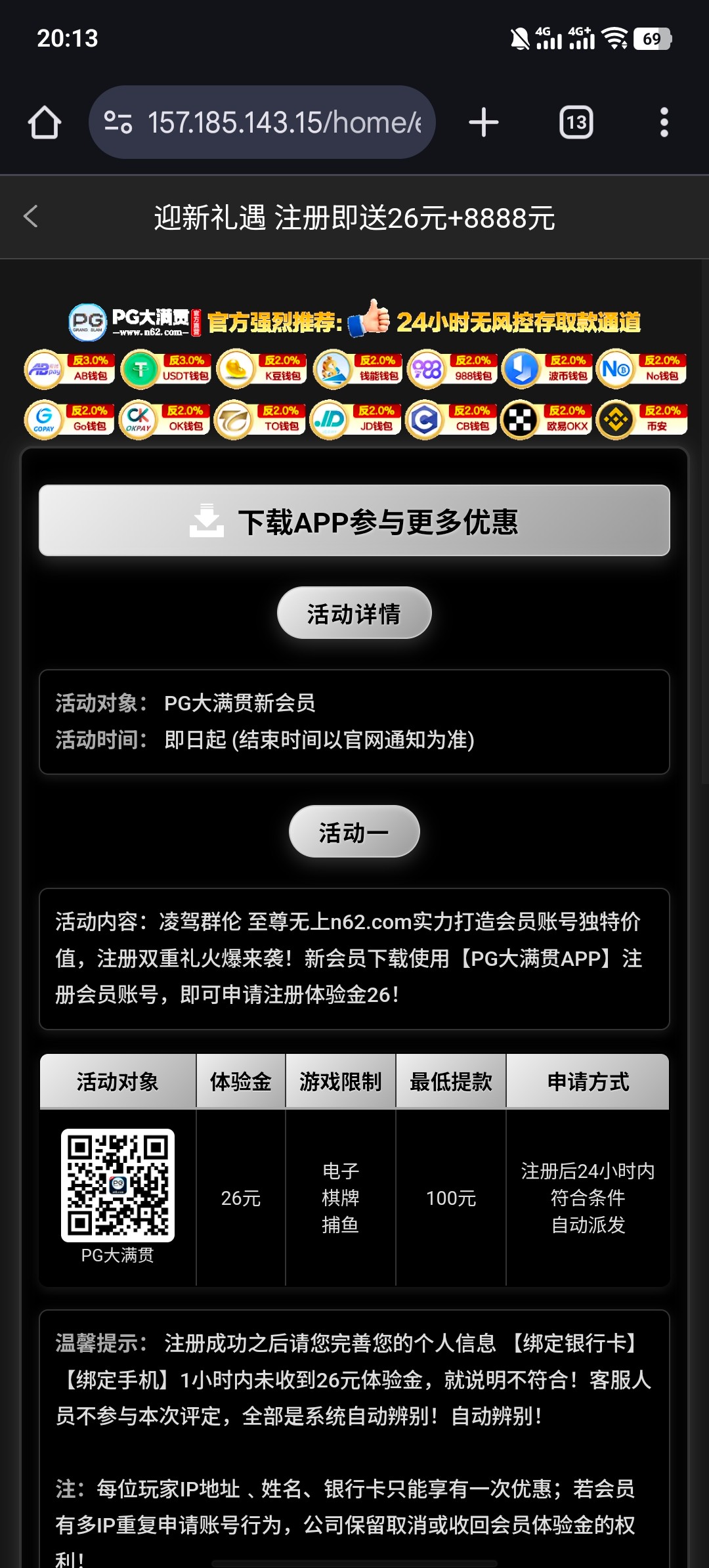 新用户注册绑卡绑定手机号虚拟币钱包优惠大厅自助申请26/100提,彩金只能玩电子棋牌捕鱼 系统自动派送 有就有没有就没有