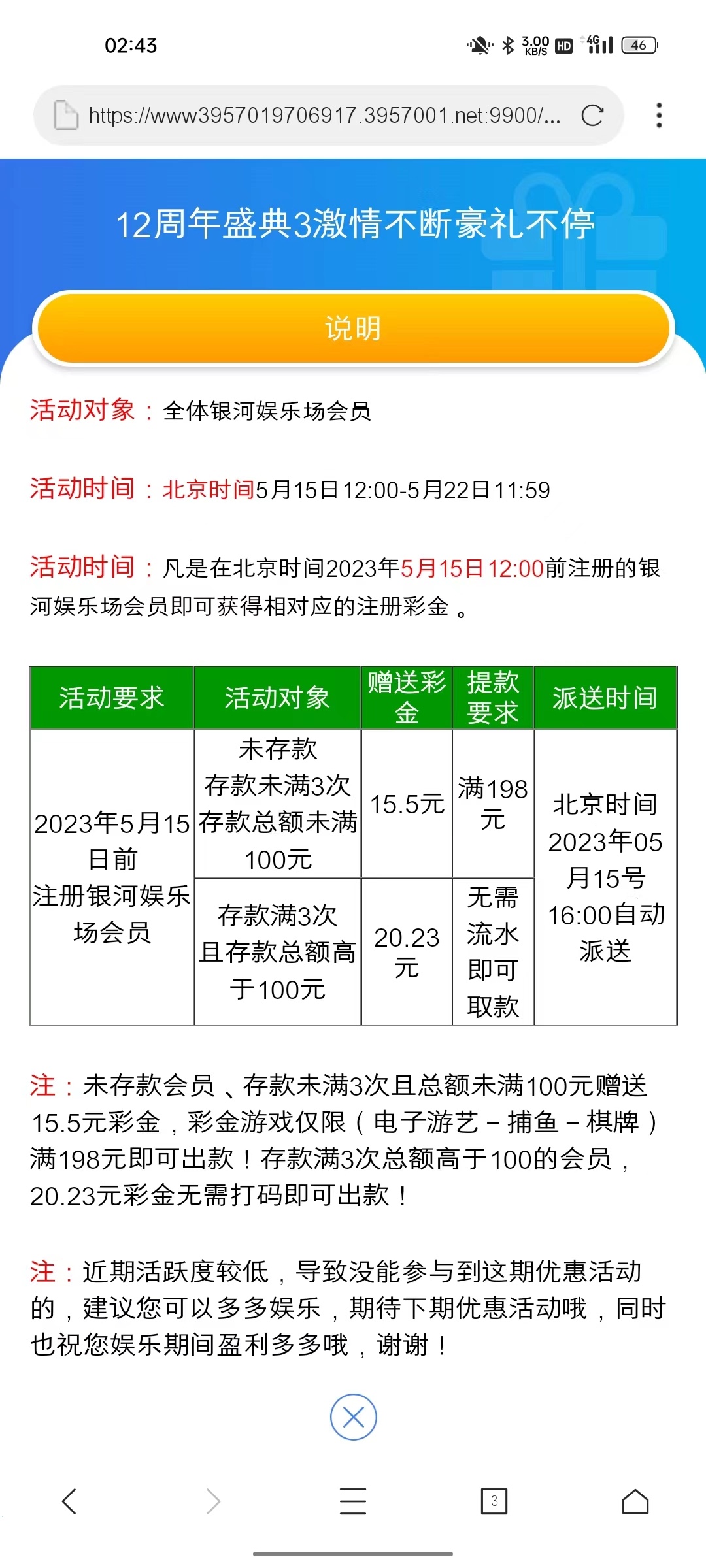 活动:老用户5.15号之前注册没充值的回馈15.5充值过的回馈20.23
