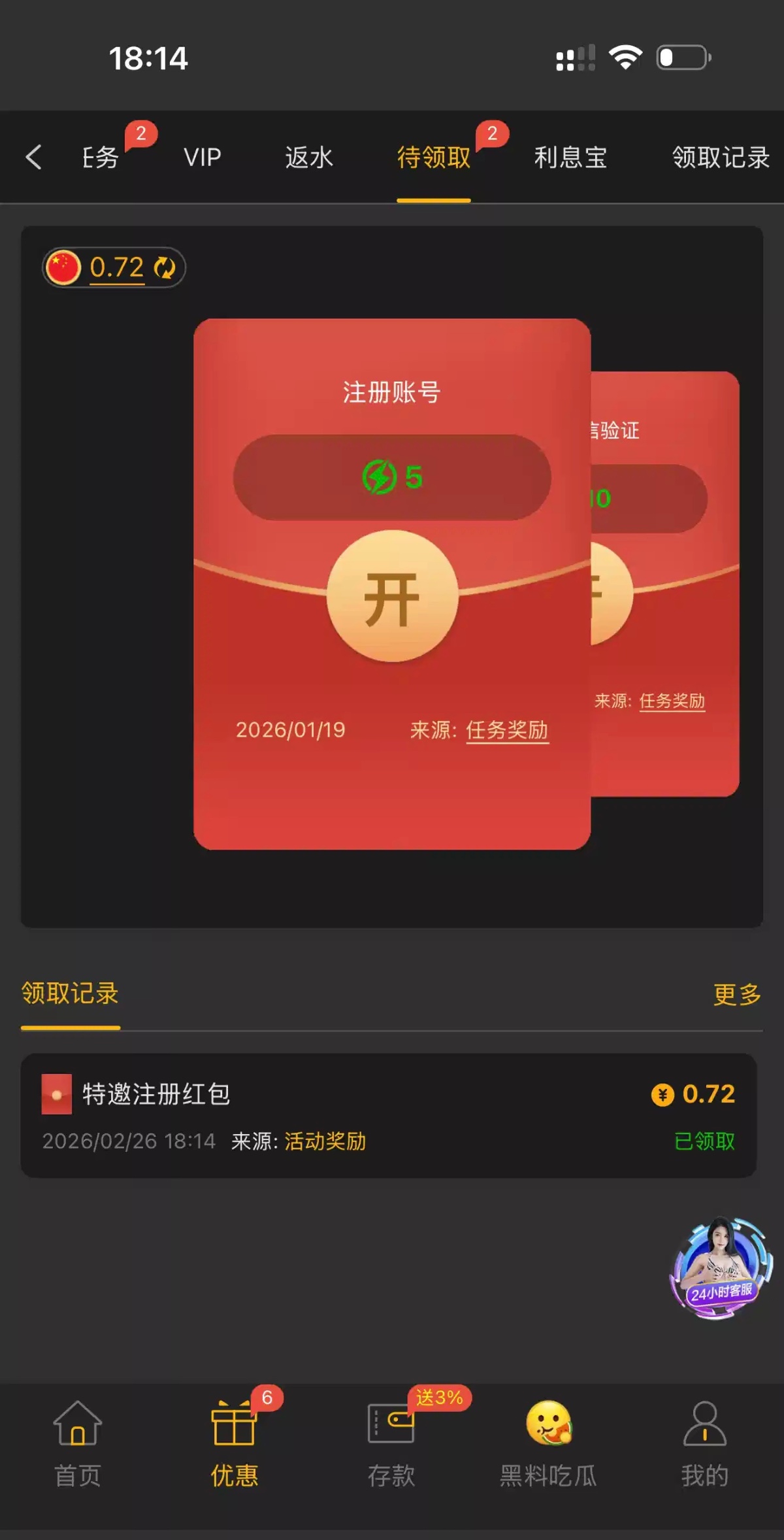 注册就有,也是够抠的