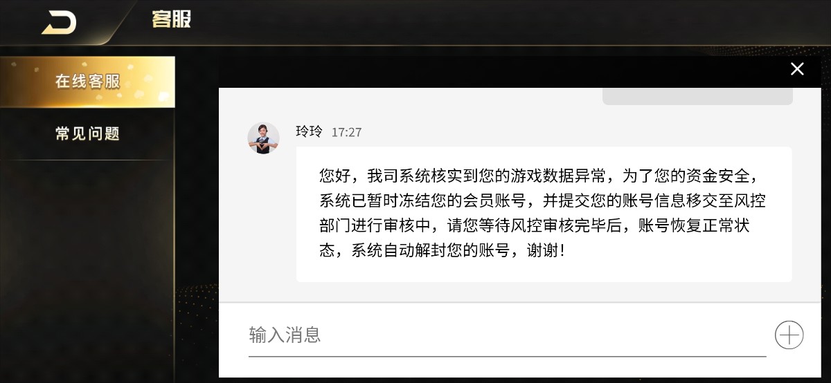 去年玩的来来回回冲了4.5w 等级v5 2月份冲了1000提1400说账号异常但是出款了,然后说审核30-90天今天上去看账号正常了冲100玩捕鱼提480又说账号异常然后手持直接冻结,真搞不懂现在台子都怎么了,冲了几万的号黑100,兄弟们真的玩不下去了