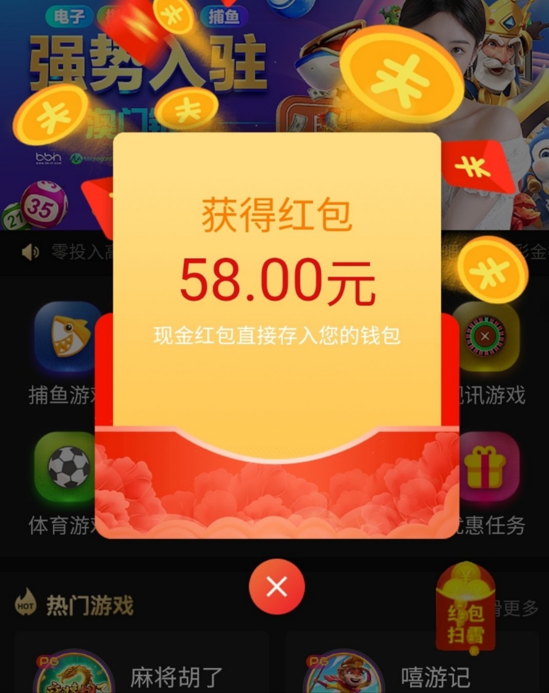 新用户注册绑卡,过几天会打电话送58。