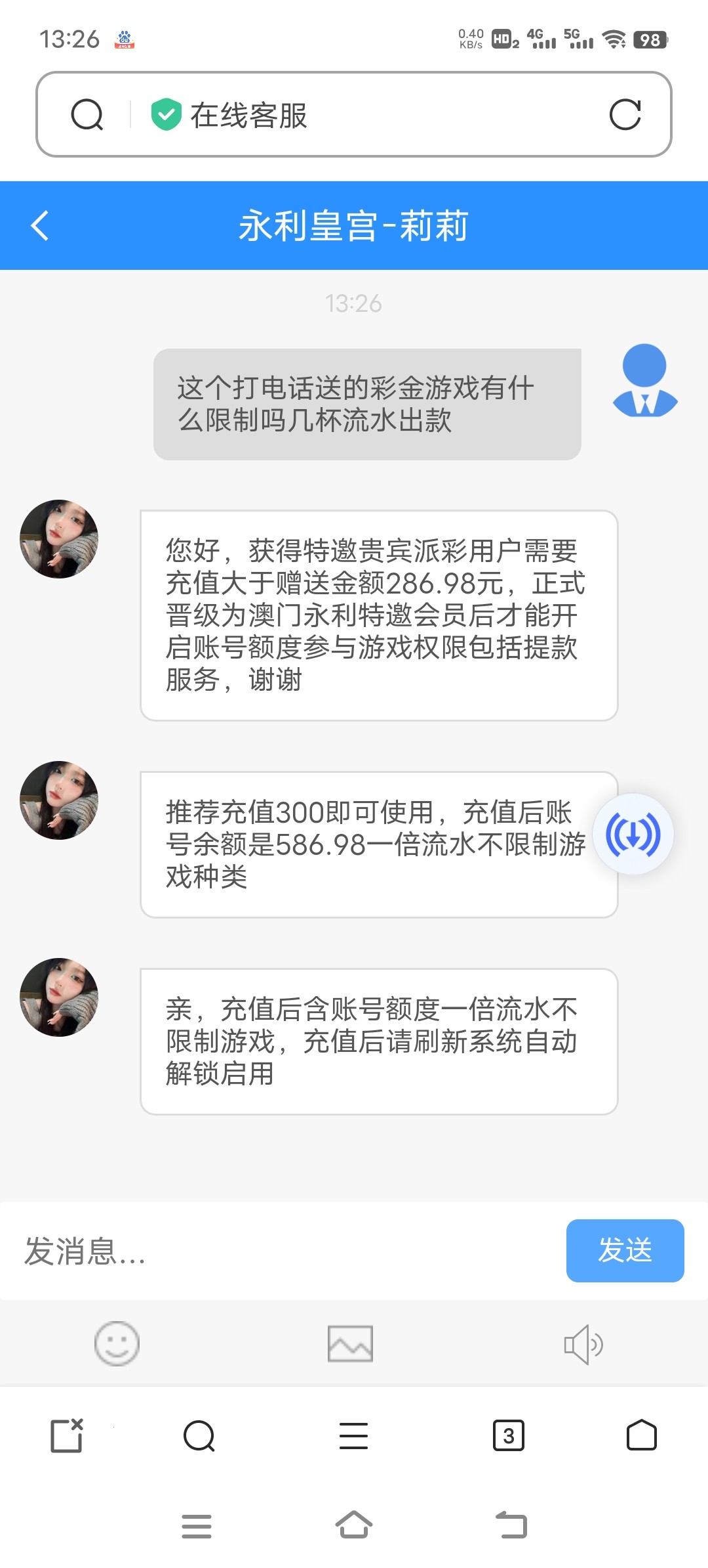 100%骗,想提款继续充,然后封号